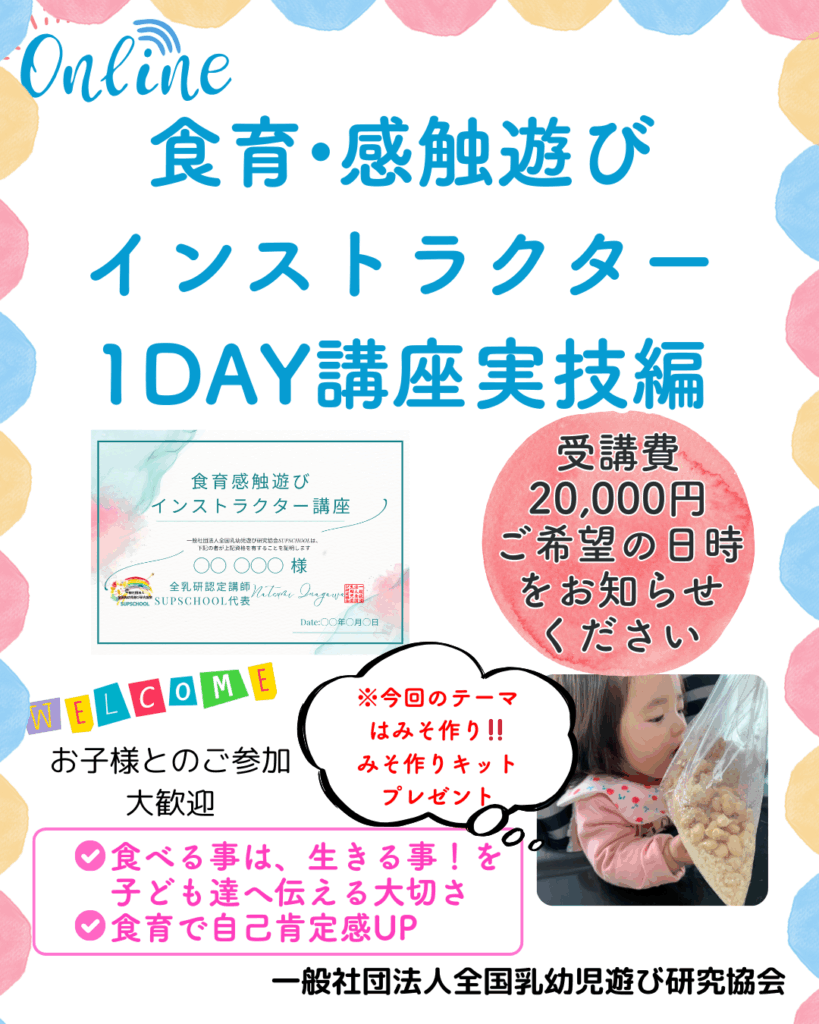 ”食育・感触遊び”インストラクターの認定証をお送りいたします